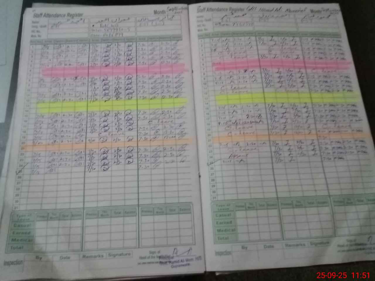 | CNIC | Full Name | Designation | R/C | Absence During Last Calender Month |