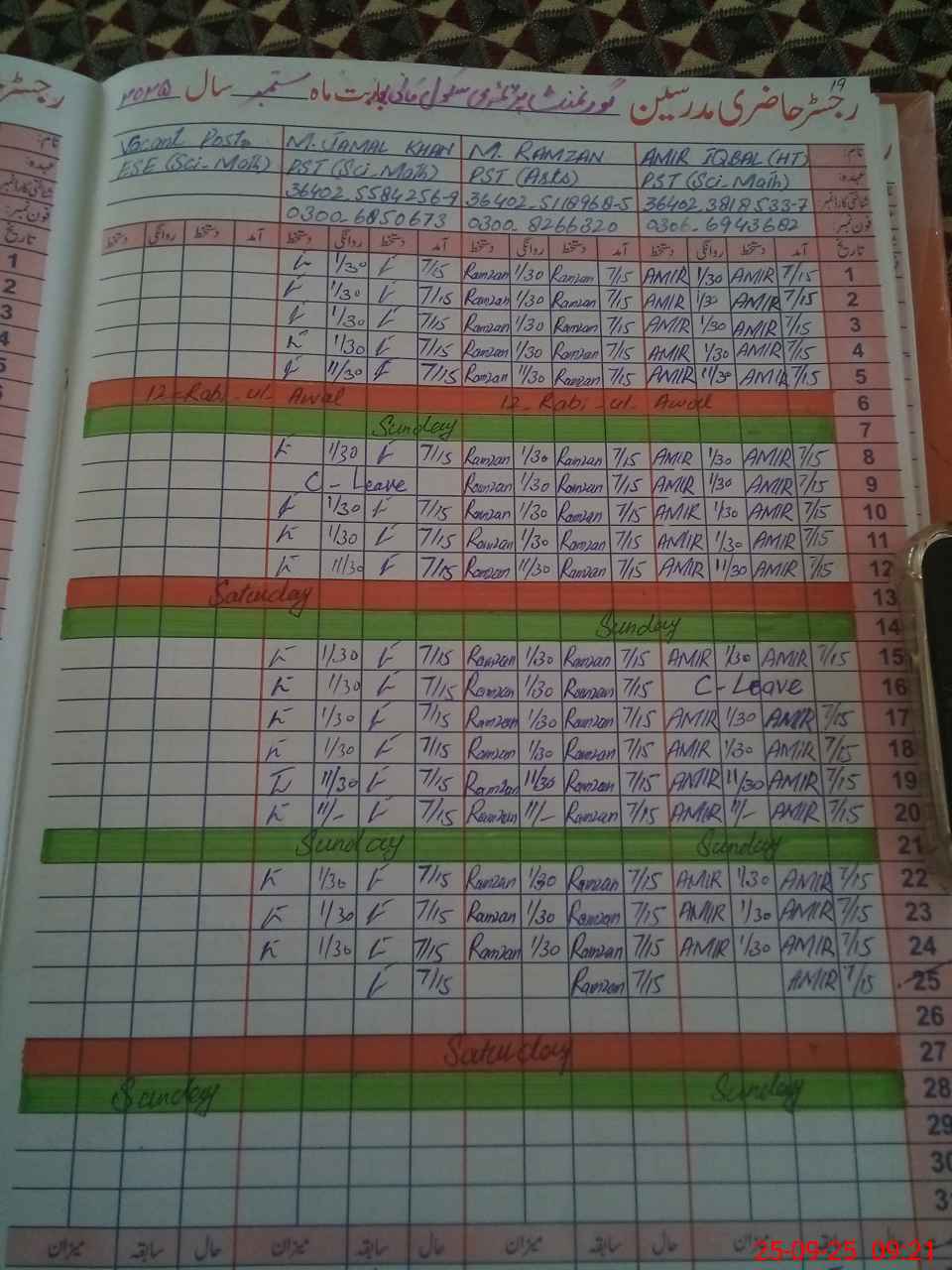 | Name: AM**** IQ**** Designation: (School Headmaster's/Headmistress's) PST Phone/Cell Number: 03**** |