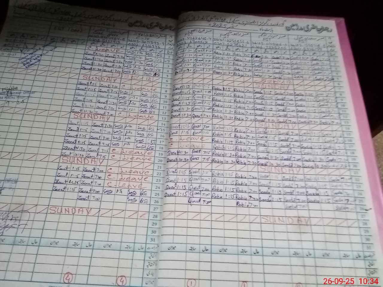 | CNIC | Full Name | Designation | R/C | Absence During Last Calender Month |