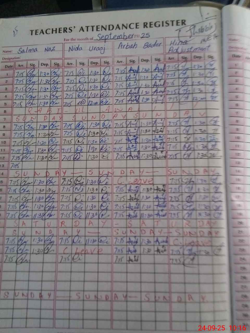 | Leave | Duty | Absent | Maternity | Medical | Ex- Pak |