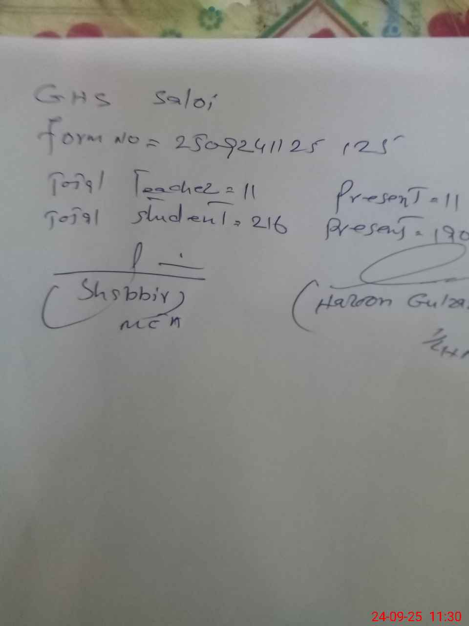 | Name: Ha**** Gu**** Designation: (School Headmaster's/Headmistress's) Headmaster Phone/Cell Number: 03**** |