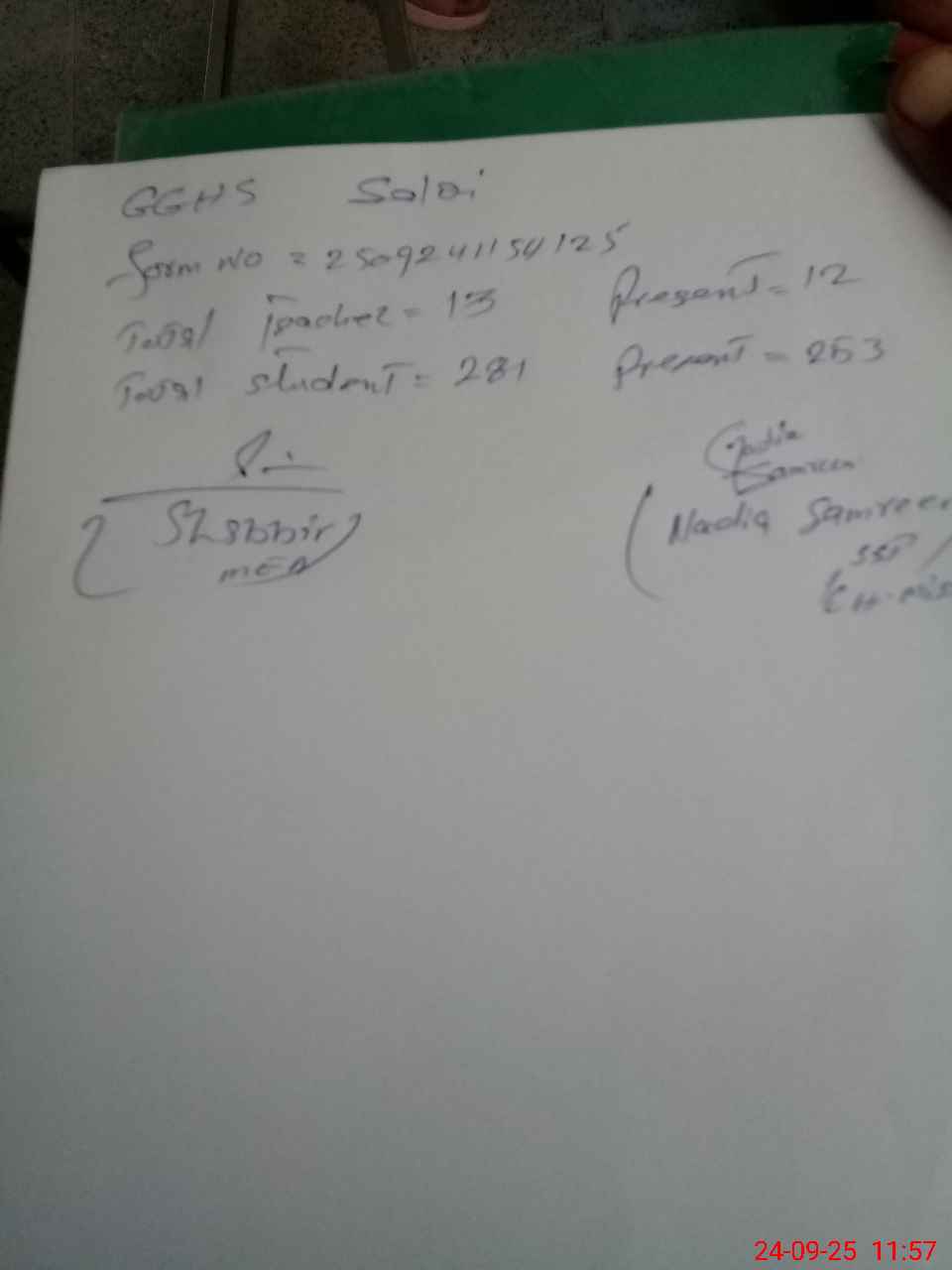 | Name: Na**** Sa**** Designation: (School Headmaster's/Headmistress's) I/C Headmistress Phone/Cell Number: 03**** |