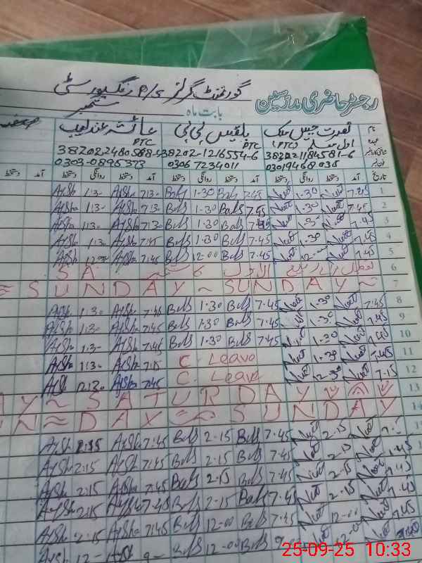 | CNIC | Full Name | Designation | R/C | Absence During Last Calender Month |