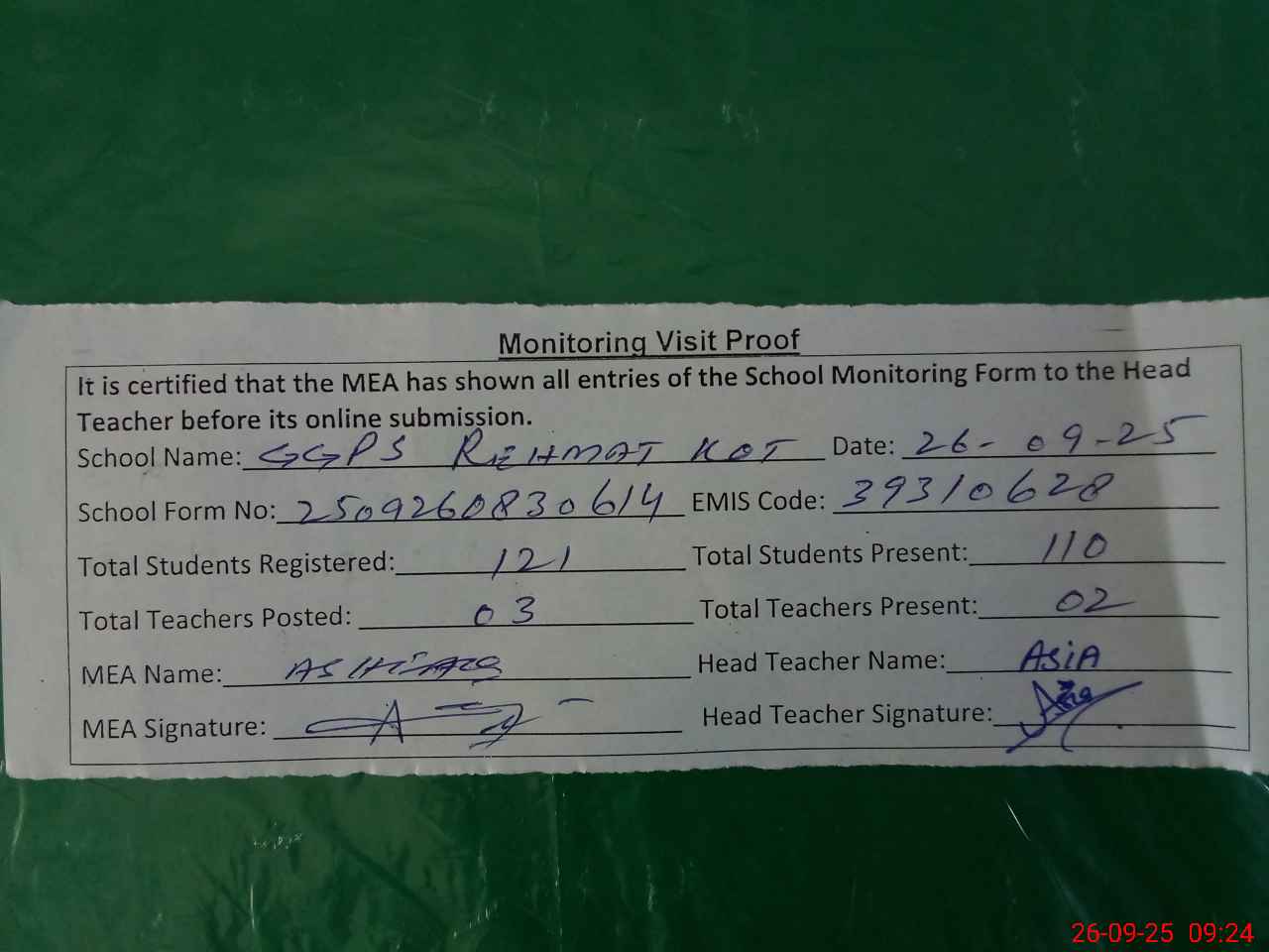 | EMIS Code: 39310628 | Name of School: GGPS REHMAT KOT | |||