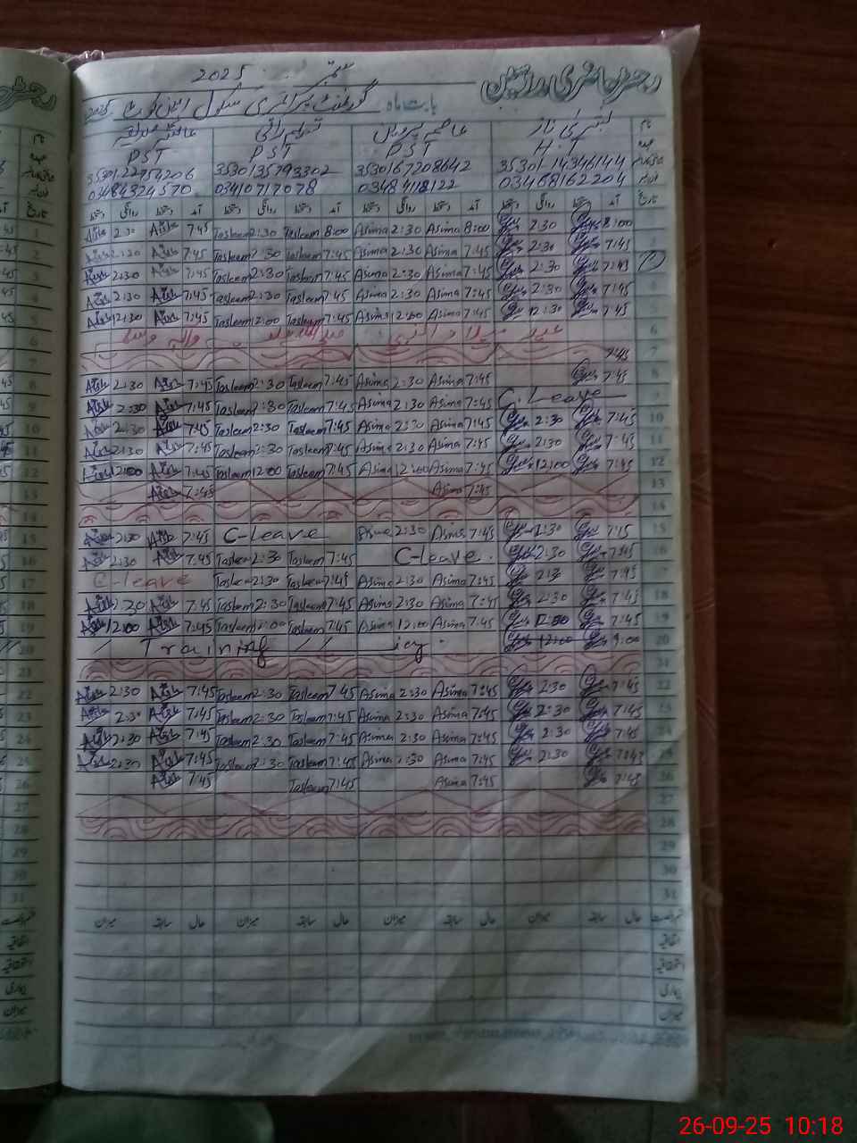 | Leave | Duty | Absent | Maternity | Medical | Ex- Pak |