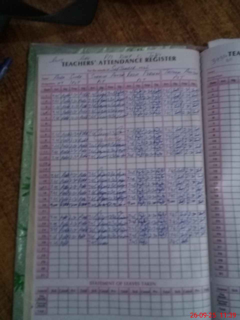 Leave Type | Remarks for today (Leave,Training, Exam,Absent,Late, Other duty) |