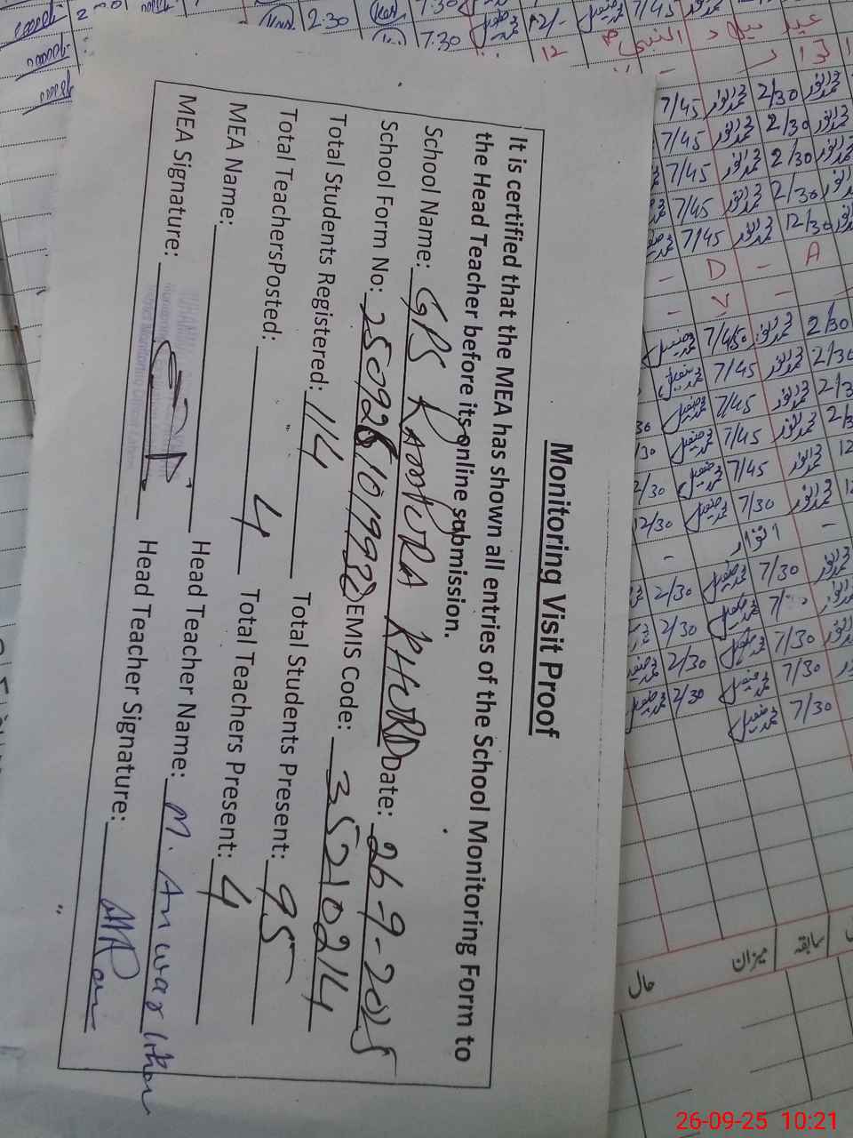 | EMIS Code: 35210214 | Name of School: GPS RAM PURA KHURD | |||