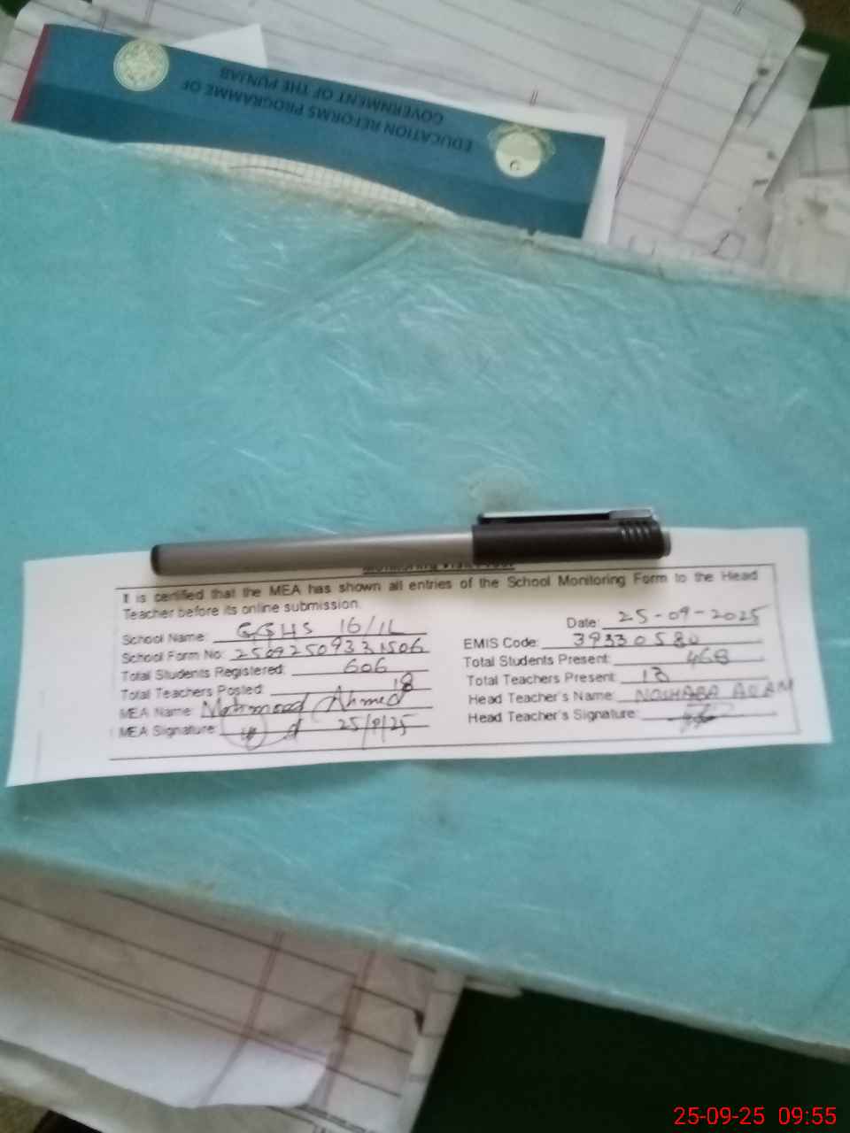 | Attendance Register | Head Teacher | MEA with School | Visit Proof |