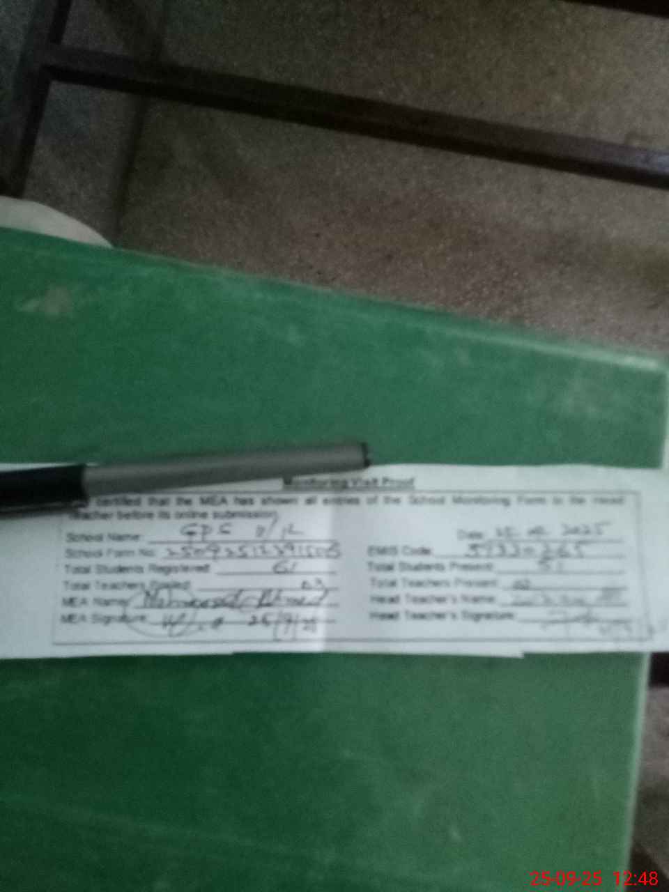 | Attendance Register | Head Teacher | MEA with School | Visit Proof |