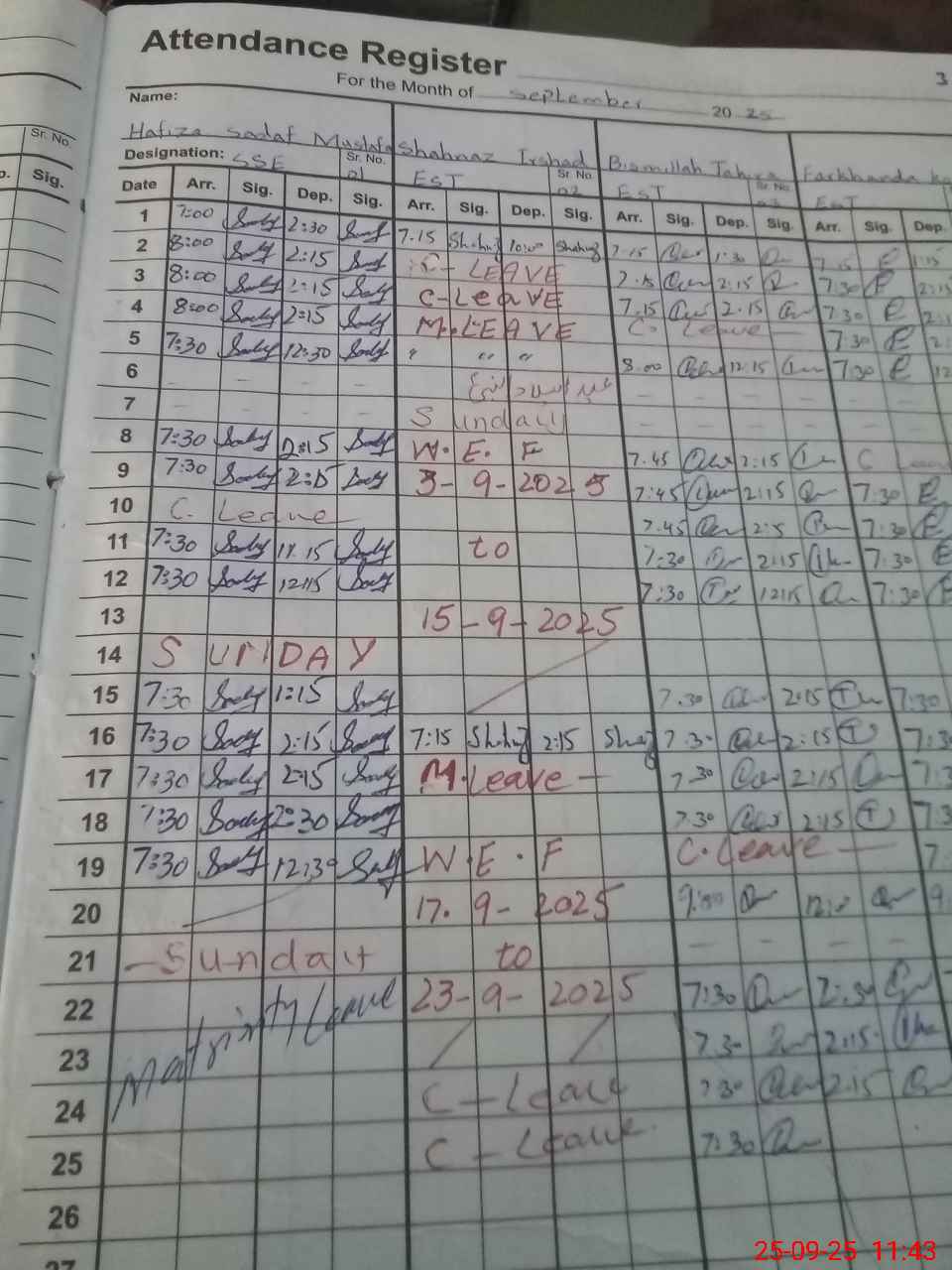 | 35**** | Ma**** Na**** | PST | Regular | 0 | 0 | 0 | 0 | 0 | 0 | 0 | 0 | 0 | Maternity |
