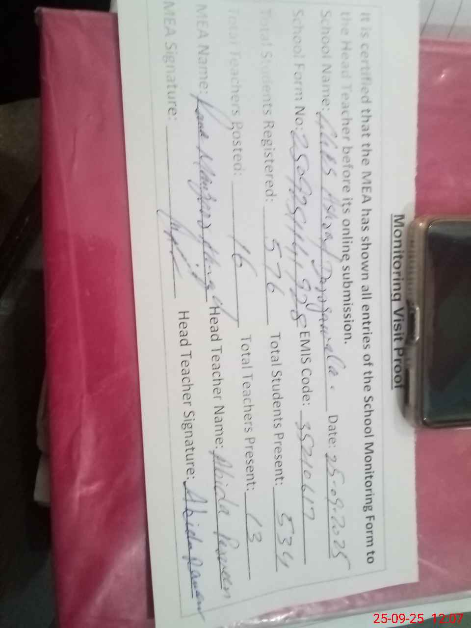| Certified that this School was Inspected by the Undersigned MEA/DMO Today and the Information Stated Above is as Per Record. | |||||