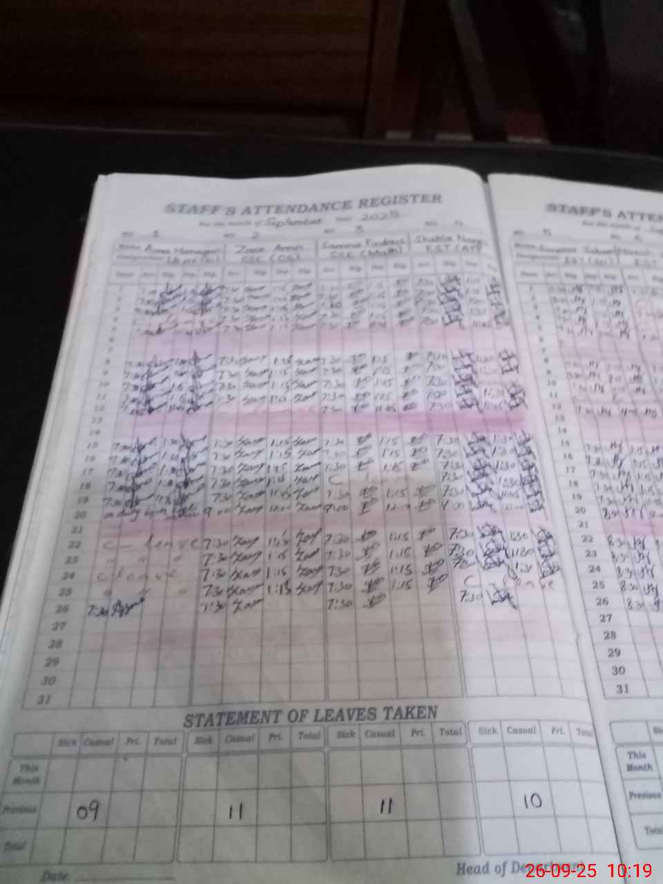 | Leave | Duty | Absent | Maternity | Medical | Ex- Pak |
