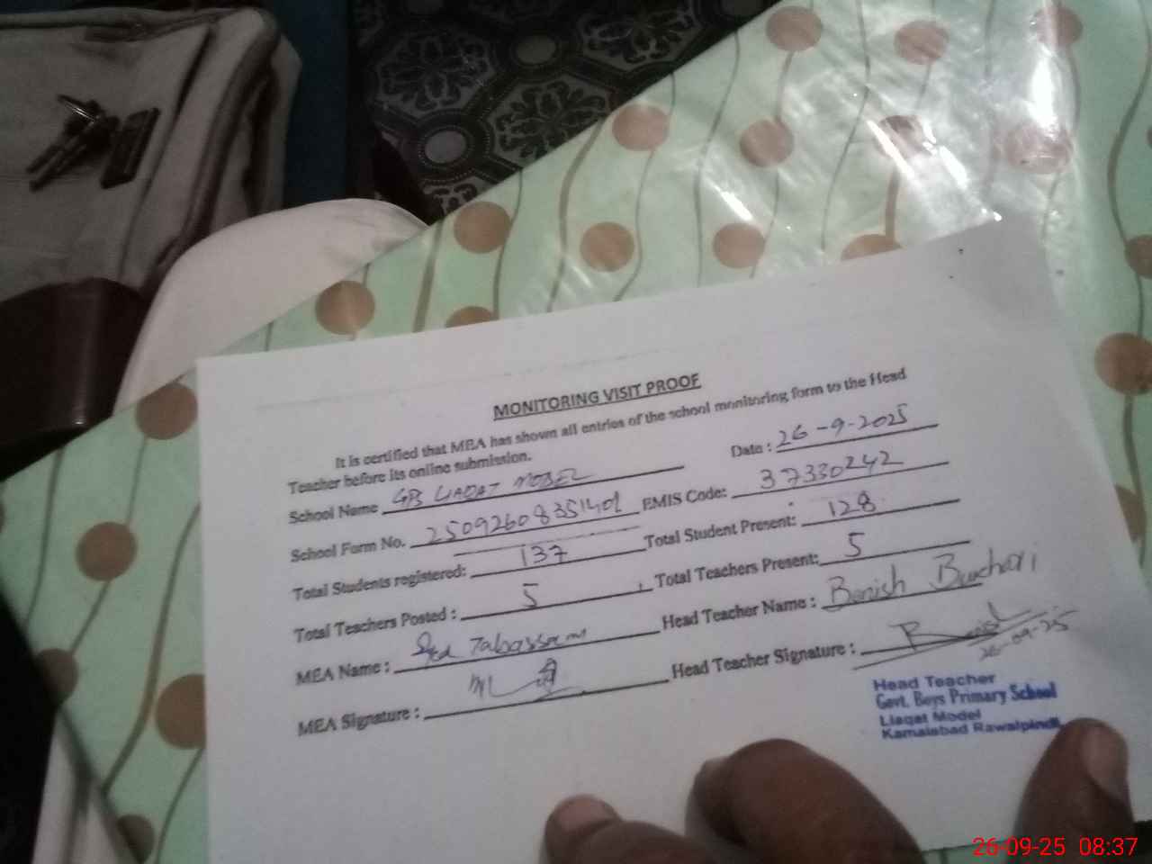 | EMIS Code: 37330242 | Name of School: GPS LIAQAT MODEL | |||