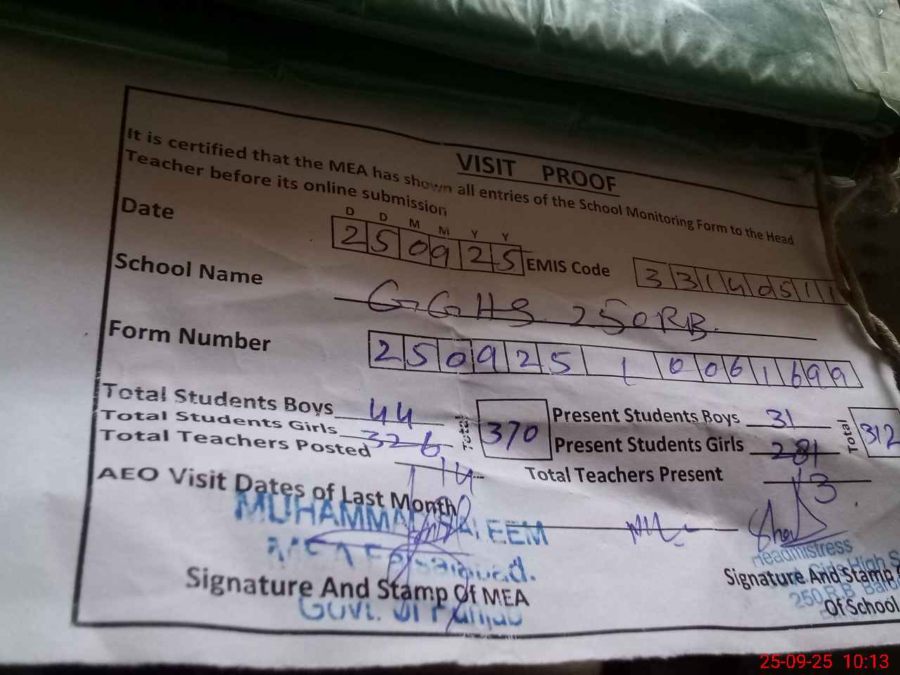 | Certified that this School was Inspected by the Undersigned MEA/DMO Today and the Information Stated Above is as Per Record. | |||||
