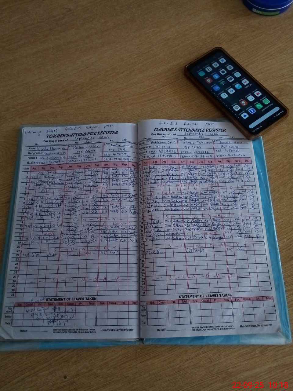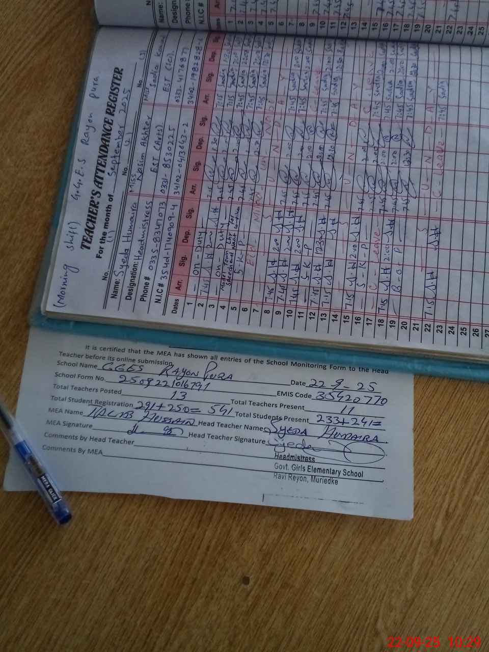 | Name: SY**** HU**** Designation: (School Headmaster's/Headmistress's) SST Phone/Cell Number: 03**** |
