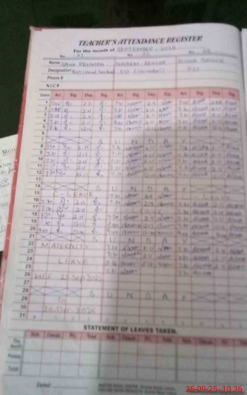 | 35**** | Sa**** Re**** | Regular | 0 | 0 | 0 | 0 | 0 | 0 | 0 | 0 | 0 | Maternity | |