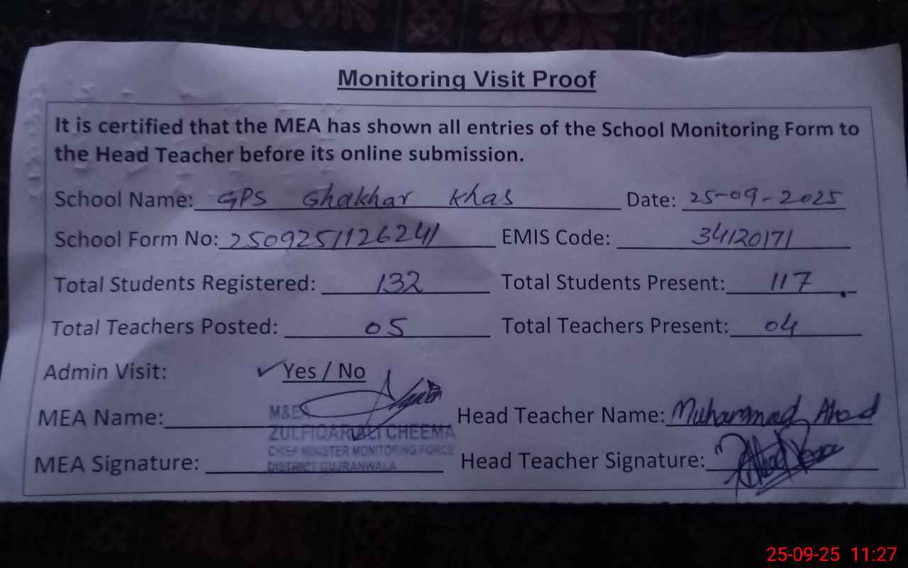 | EMIS Code: 34120171 | Name of School: GPS GHAKHAR KHAS | |||