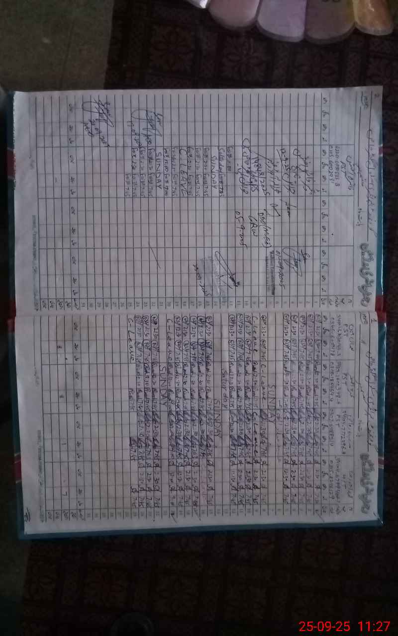 | CNIC | Full Name | Designation | R/C | Absence During Last Calender Month |