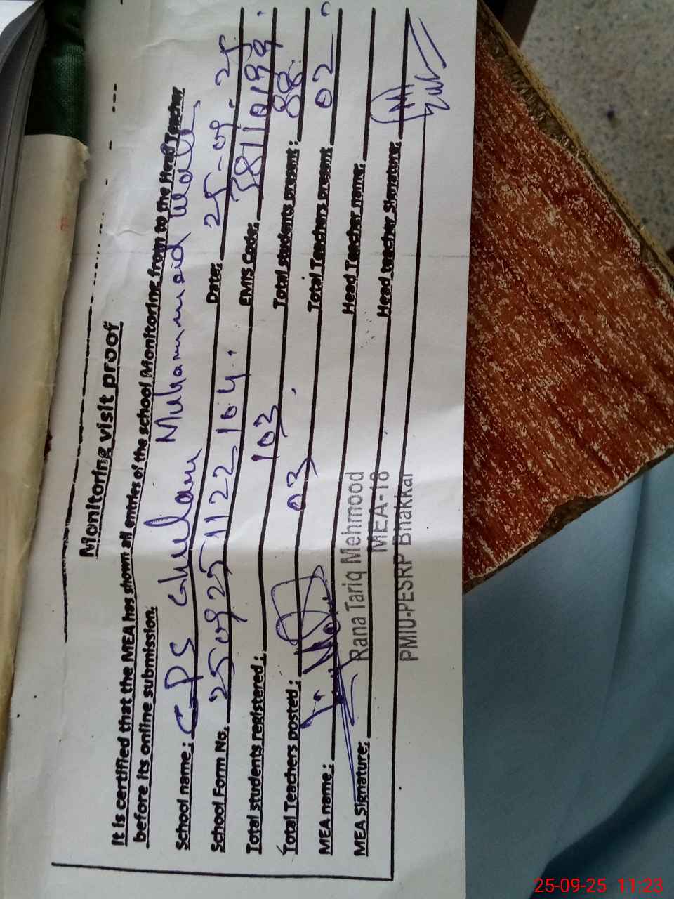 | Certified that this School was Inspected by the Undersigned MEA/DMO Today and the Information Stated Above is as Per Record. | |||||