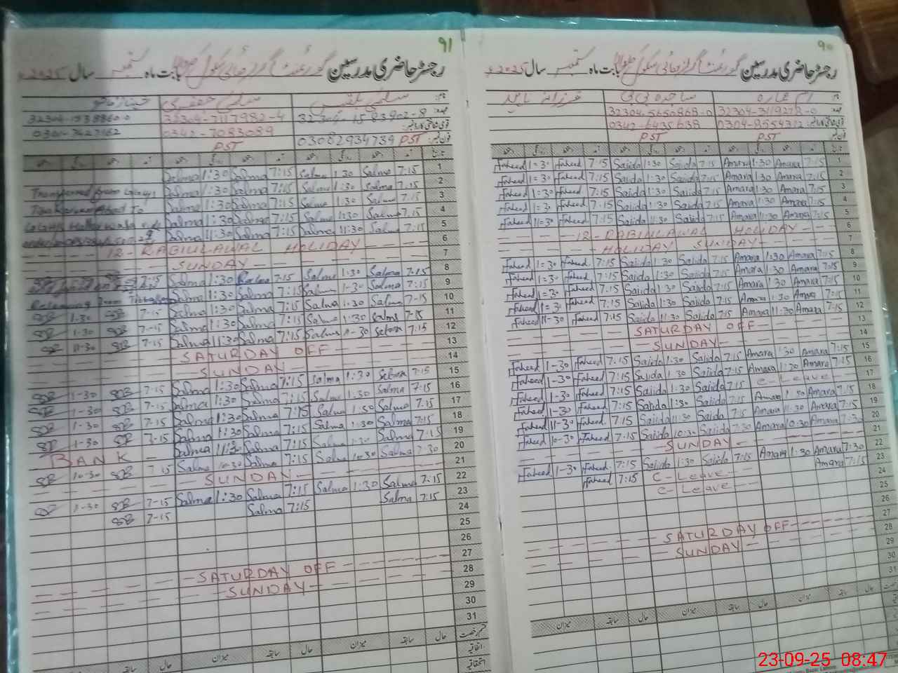 | Name: SA**** BU**** Designation: (School Headmaster's/Headmistress's) SST Arts Phone/Cell Number: 03**** 69**** |