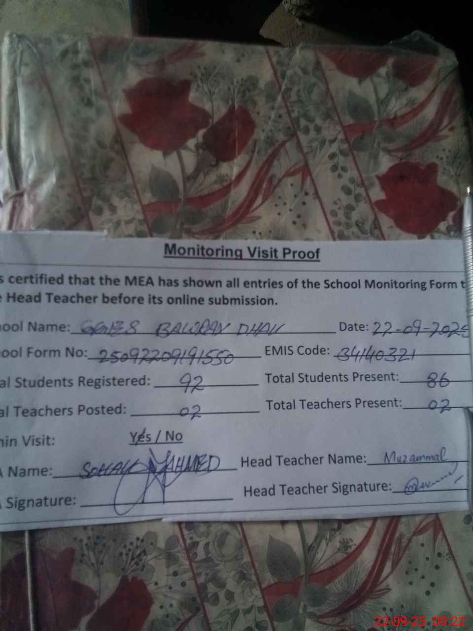 | EMIS Code: 34140321 | Name of School: GGES BAWRAY DHAK | |||