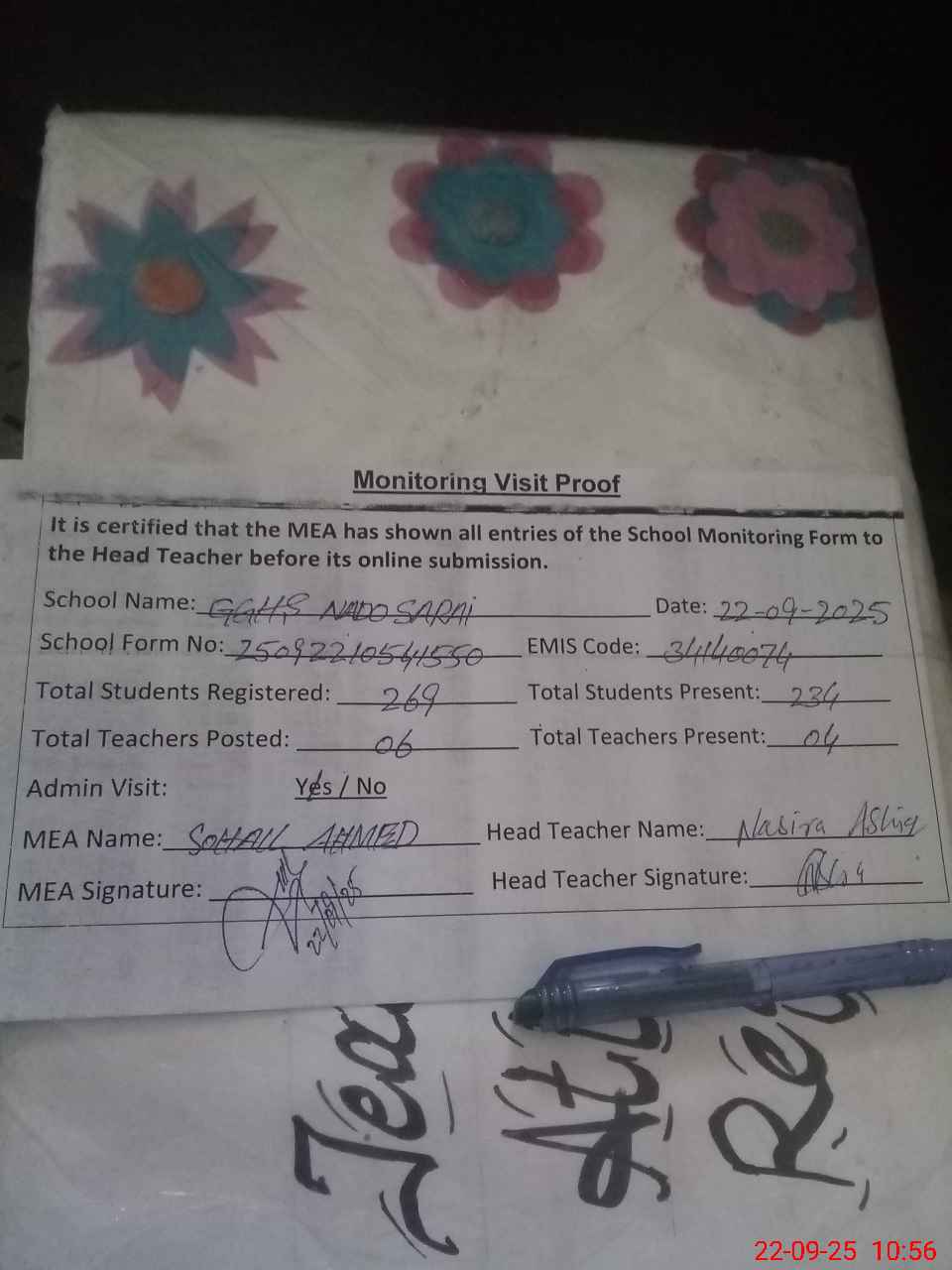 | EMIS Code: 34140074 | Name of School: GGHS NADO SARAI | |||