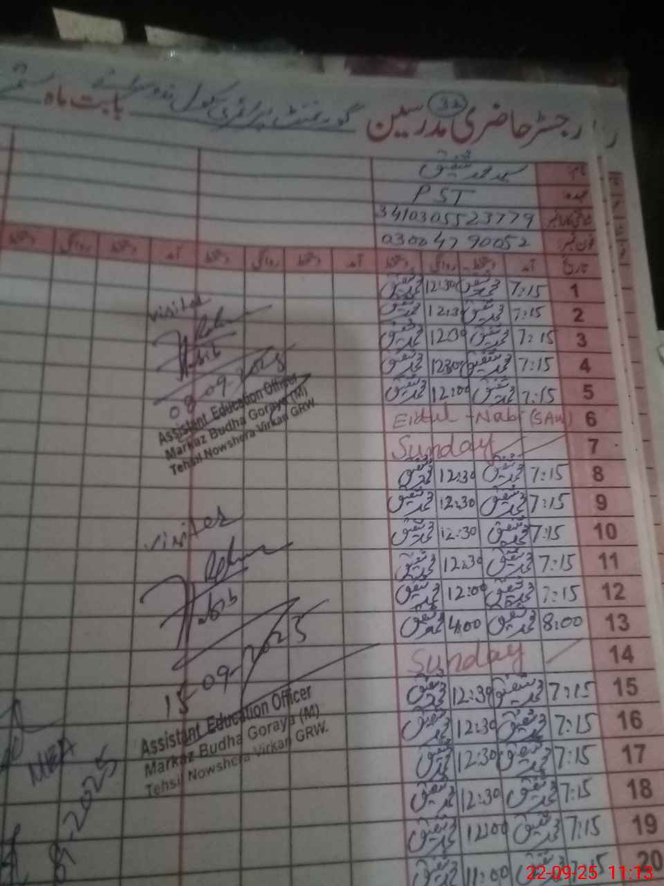 | Name: SY**** MU**** SH**** Designation: (School Headmaster's/Headmistress's) PST Phone/Cell Number: 03**** |