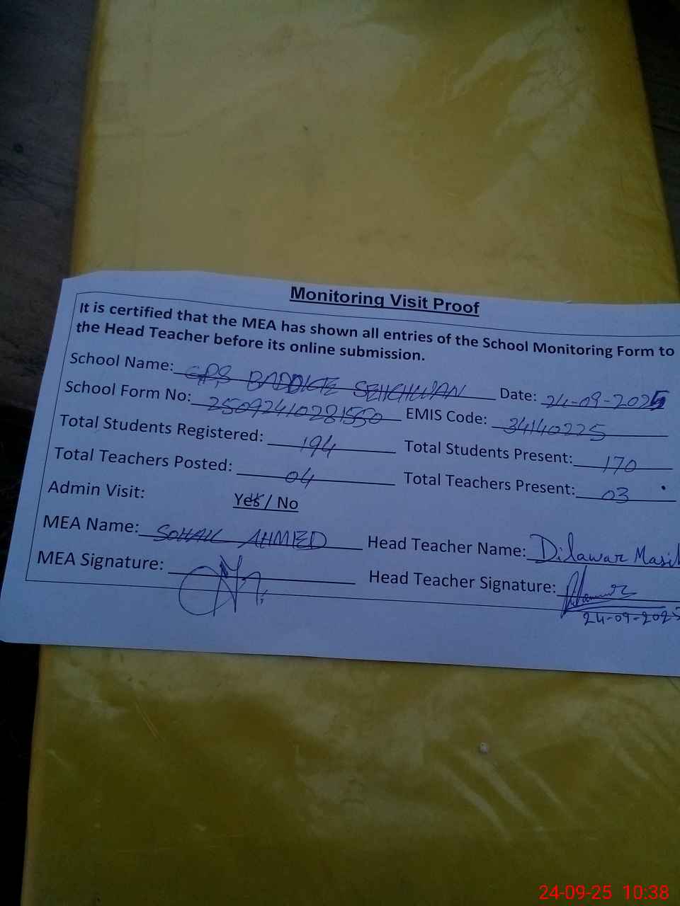 | EMIS Code: 34140225 | Name of School: GPS BADDOKE SEIKHWAN | |||