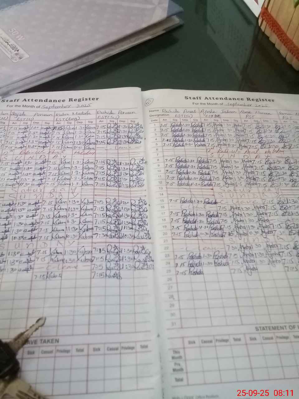| Leave | Duty | Absent | Maternity | Medical | Ex- Pak |