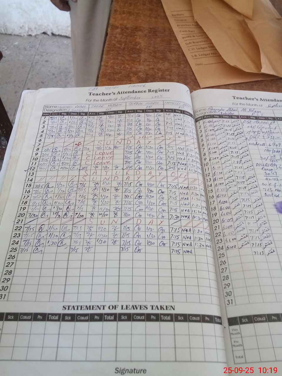| Leave | Duty | Absent | Maternity | Medical | Ex- Pak |