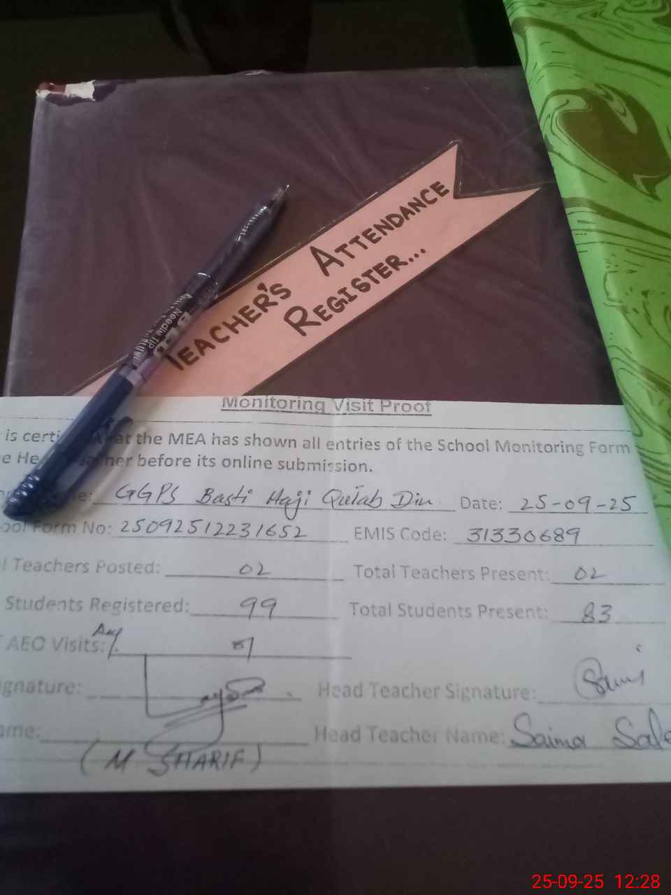 | EMIS Code: 31330689 | Name of School: GGPS BASTI HAJI QUTAB DIN | |||