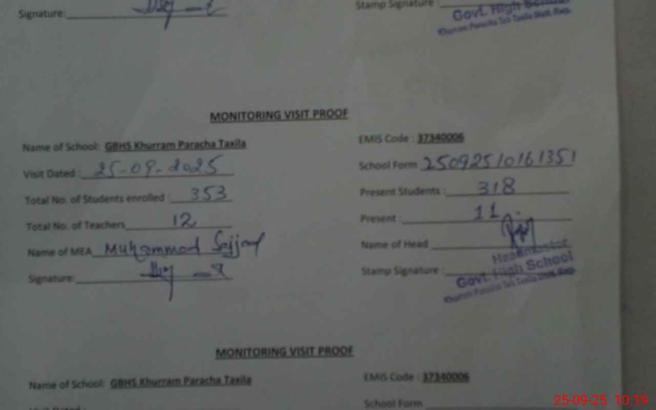 | EMIS Code: 37340006 | Name of School: GHS KHURRAM PARACHA | |||