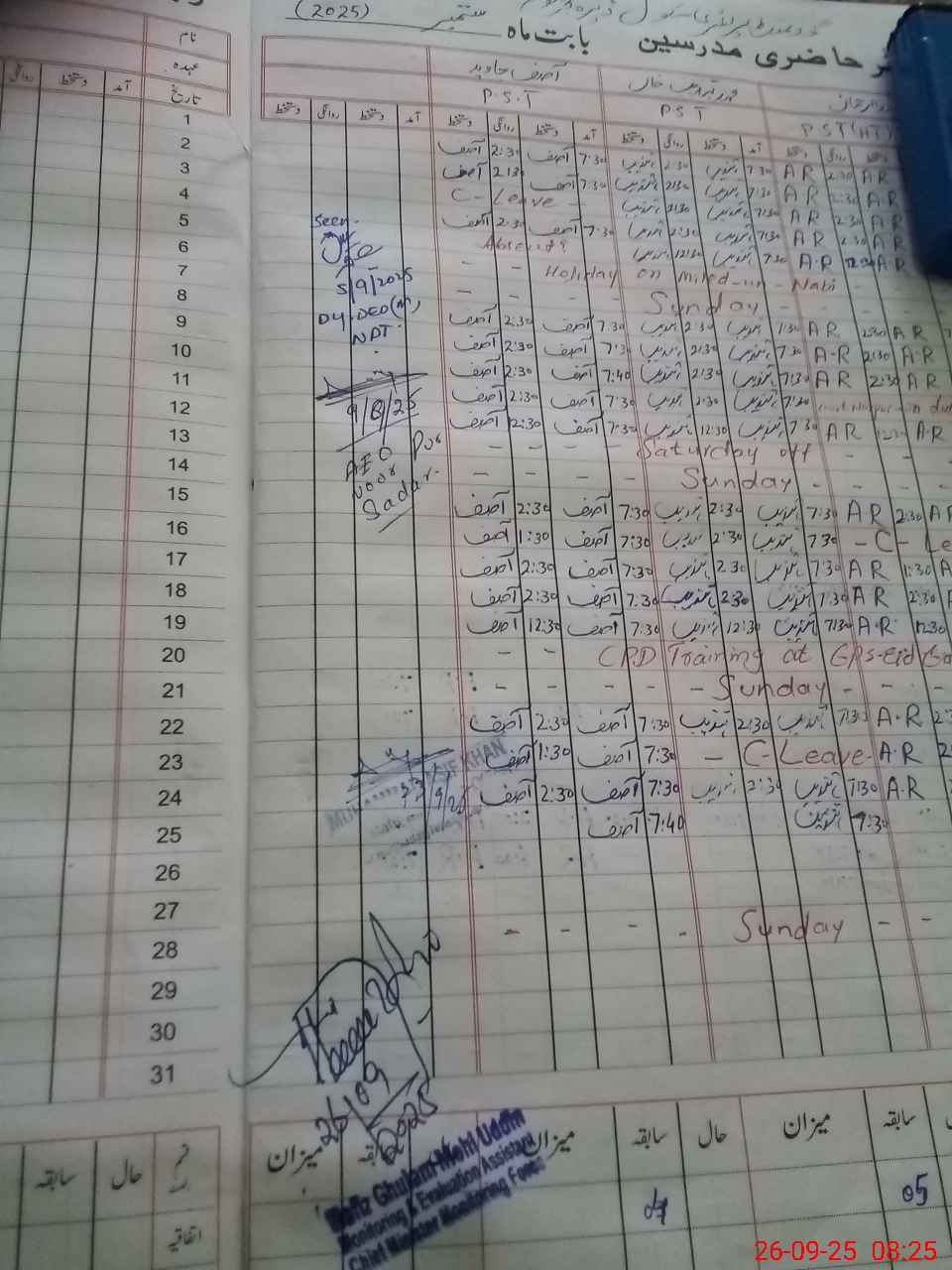 | CNIC | Full Name | Designation | R/C | Absence during last cal. month |
