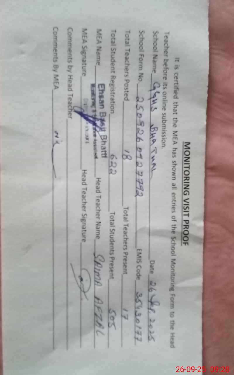 | EMIS Code: 35430177 | Name of School: GGHS BHATHAL | |||