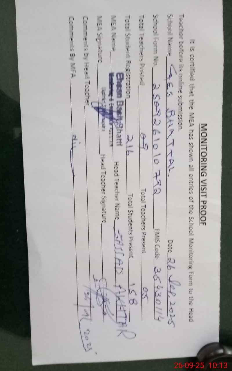 | EMIS Code: 35430114 | Name of School: GES BHATTAL | |||