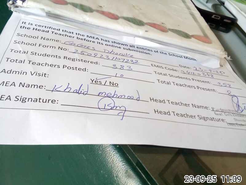 | Certified that this School was Inspected by the Undersigned MEA/DMO Today and the Information Stated Above is as Per Record. | |||||