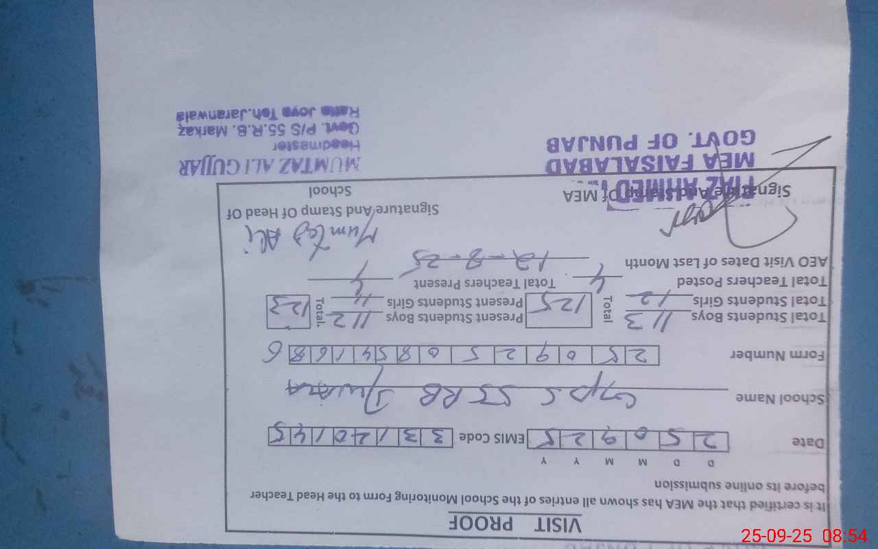 | Name: MU**** AL**** Designation: (School Headmaster's/Headmistress's) PST/PTC/JV Phone/Cell Number: 03**** |