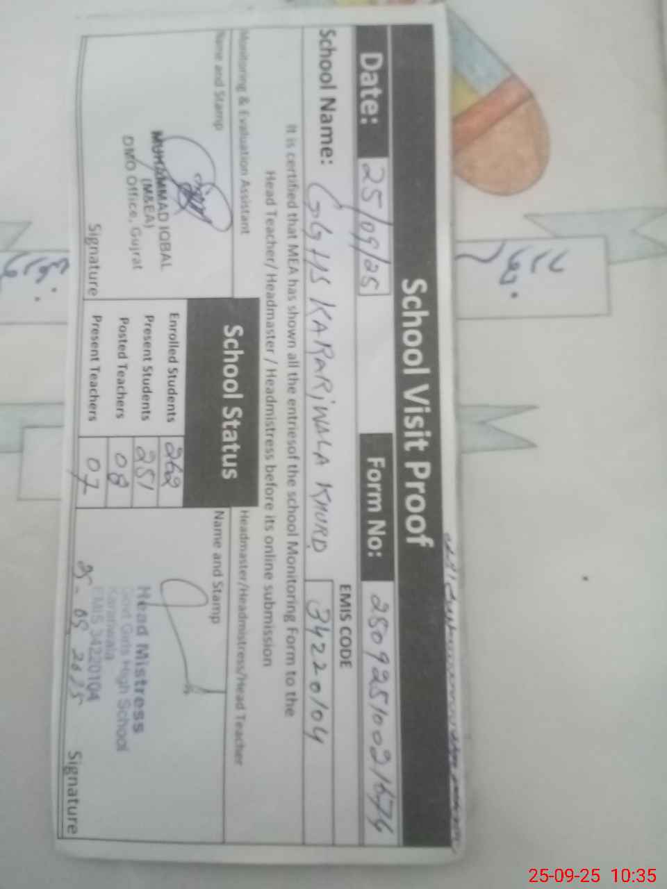 | EMIS Code: 34220104 | Name of School: GGHS KARARI WALA KHURD | |||