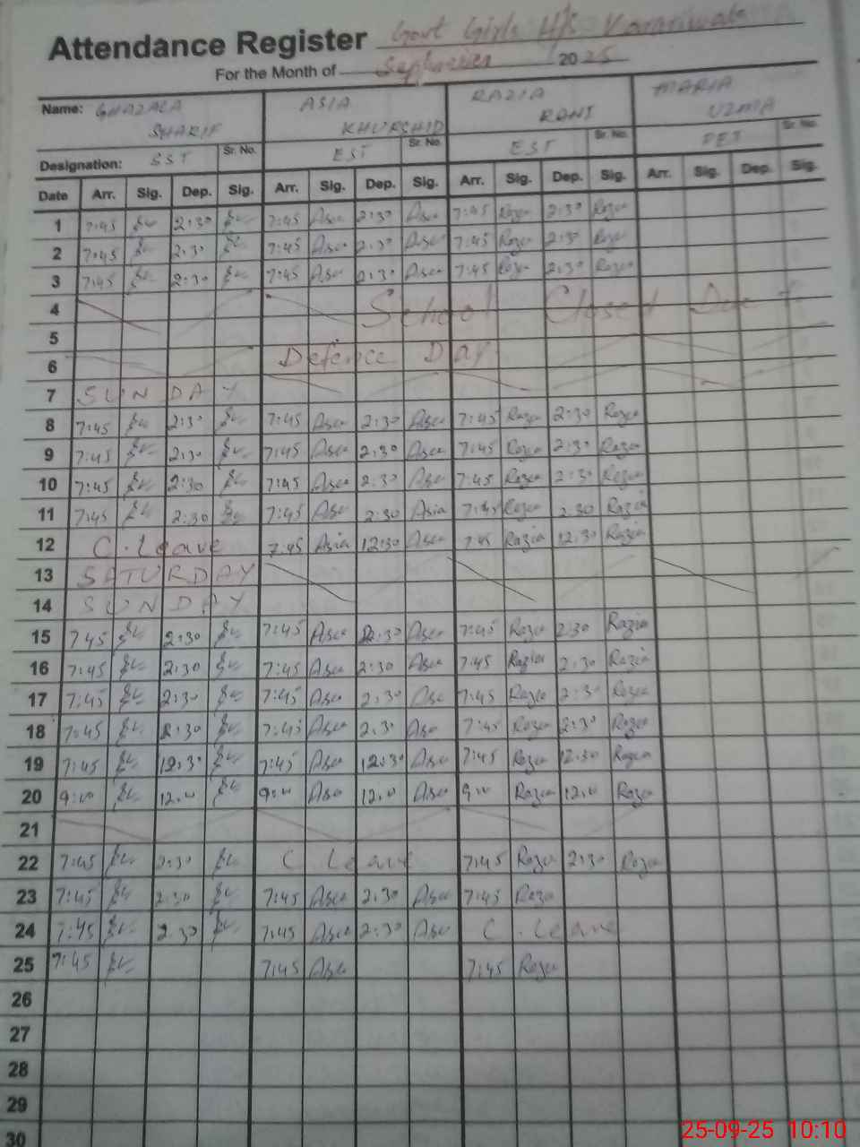| 34**** | Ma**** Uz**** | SESE | Contract | 0 | 0 | 0 | 0 | 0 | 0 | 0 | 0 | 0 | Absent (Un-Authorized) |