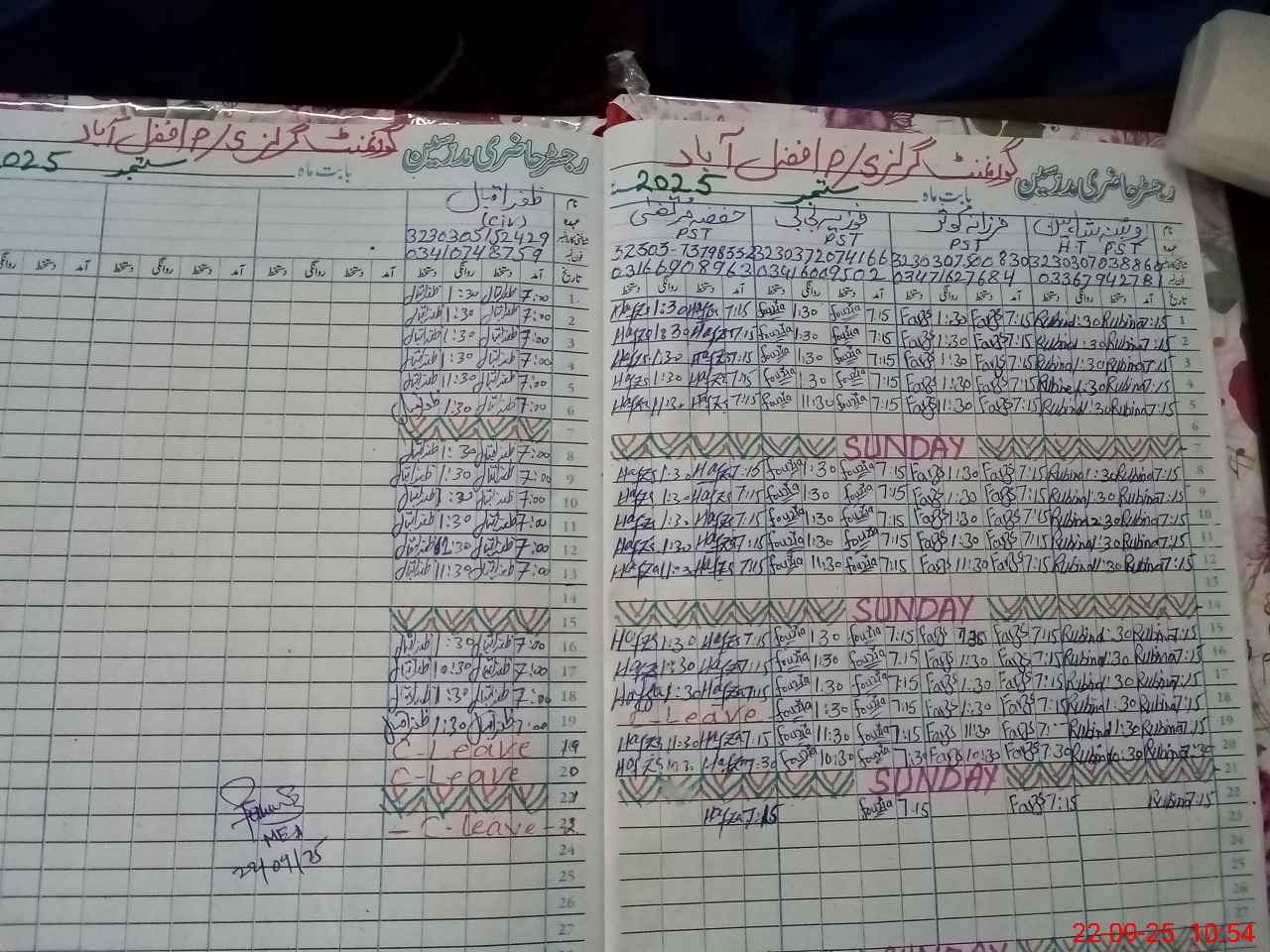 | CNIC | Full Name | Designation | R/C | Absence during last cal. month |