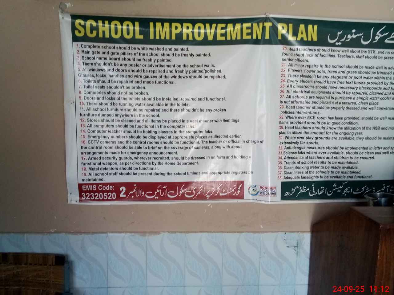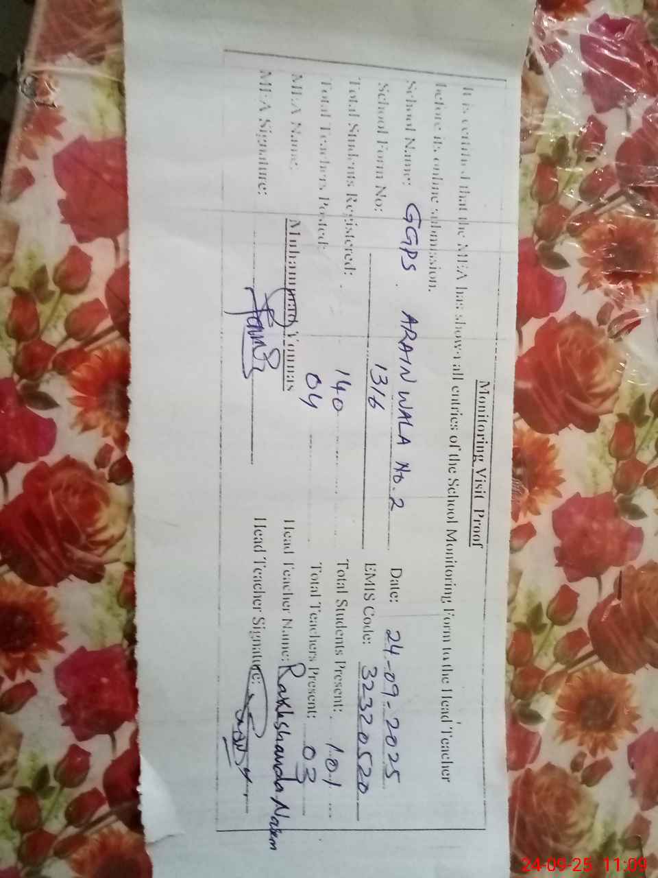| EMIS Code: 32320520 | Name of School: GGPS ARAIN WALA NO.2 | |||