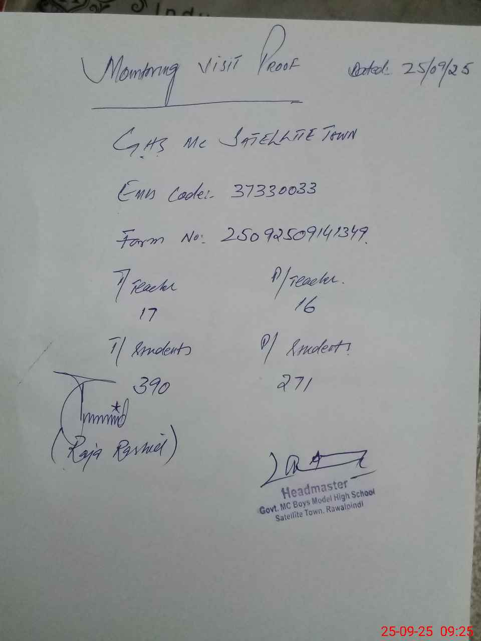 | EMIS Code: 37330033 | Name of School: GHS MC SATELLITE TOWN | |||