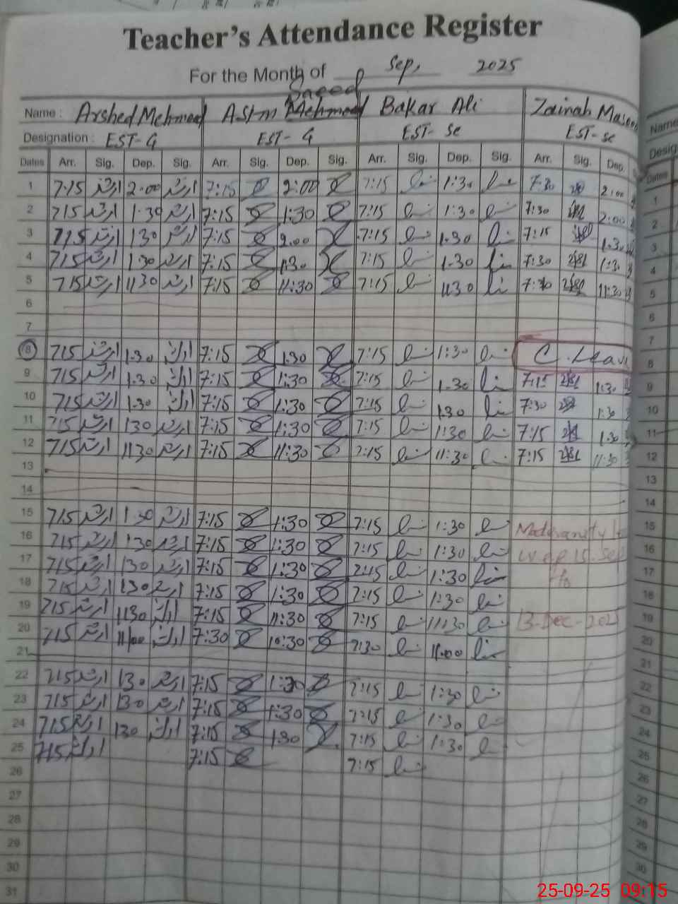 | Attendance Register | Head Teacher | MEA with School | Visit Proof |