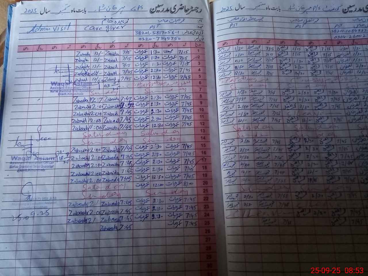 | Name: NA**** KH**** Designation: (School Headmaster's/Headmistress's) PST/PTC/JV Phone/Cell Number: 03**** |