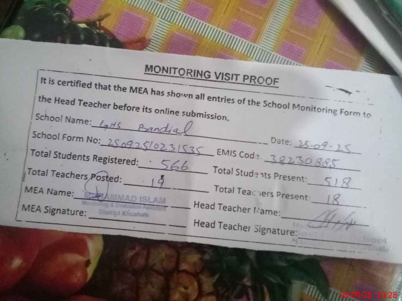 | EMIS Code: 38230885 | Name of School: GHS BANDIAL | |||