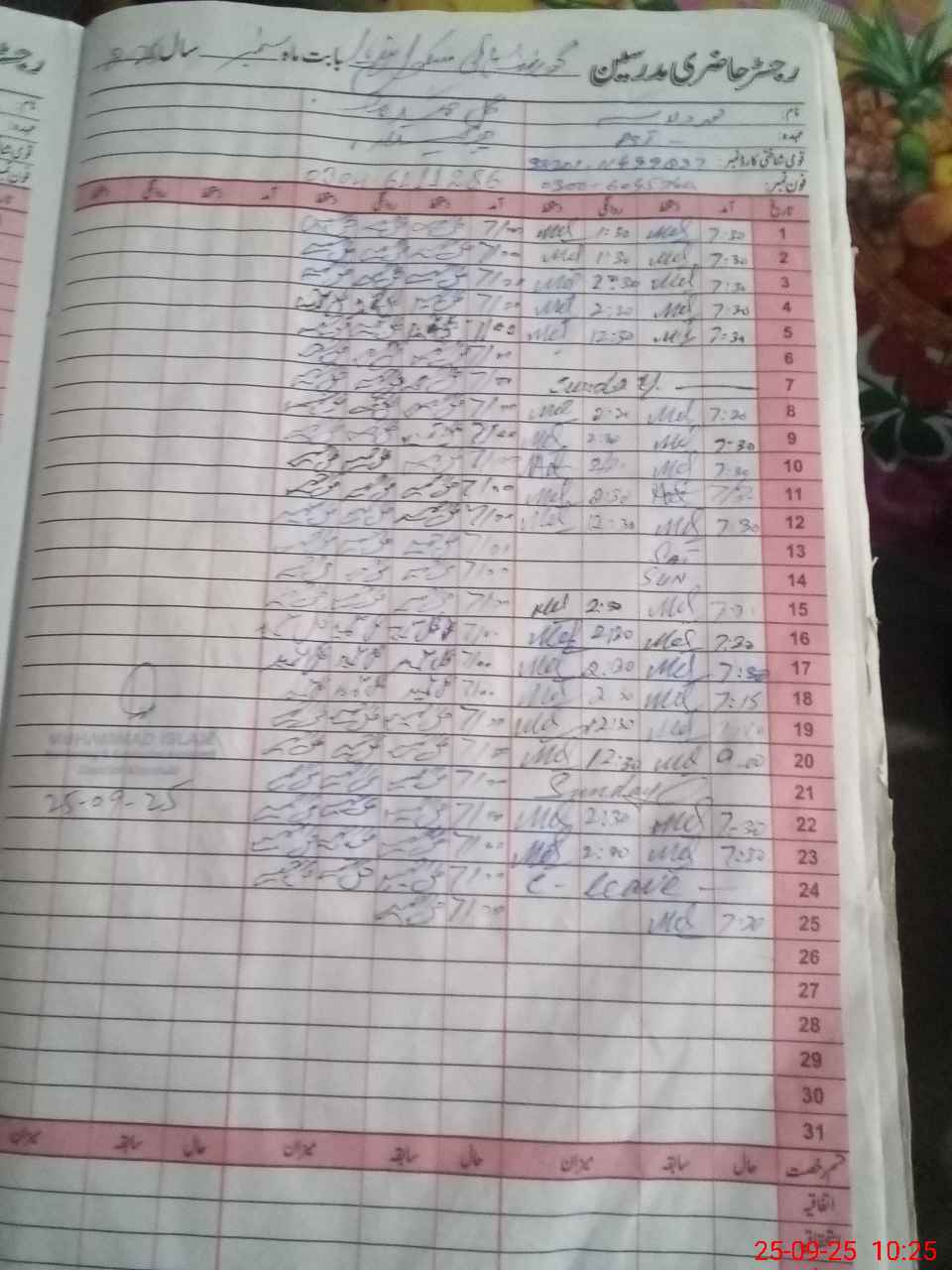 | Name: Mu**** Ak**** Designation: (School Headmaster's/Headmistress's) Head Master Phone/Cell Number: 03**** |