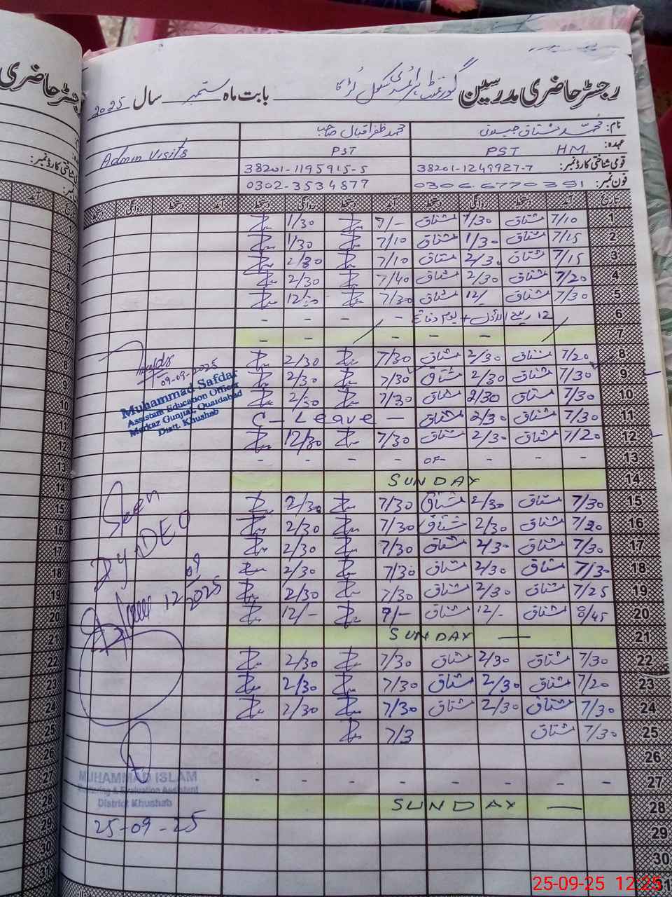 | Name: So**** Ah**** Designation: (School Headmaster's/Headmistress's) PST/PTC/JV Phone/Cell Number: 03**** |