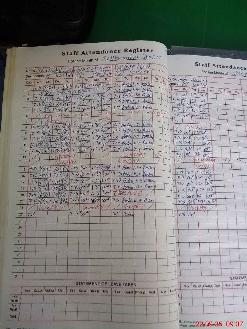 | Leave | Duty | Absent | Maternity | Medical | Ex- Pak |