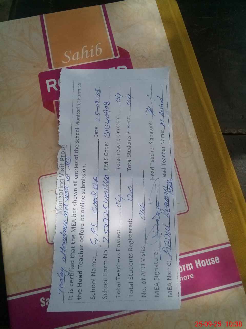 | EMIS Code: 31340908 | Name of School: GPS GHORELA | |||