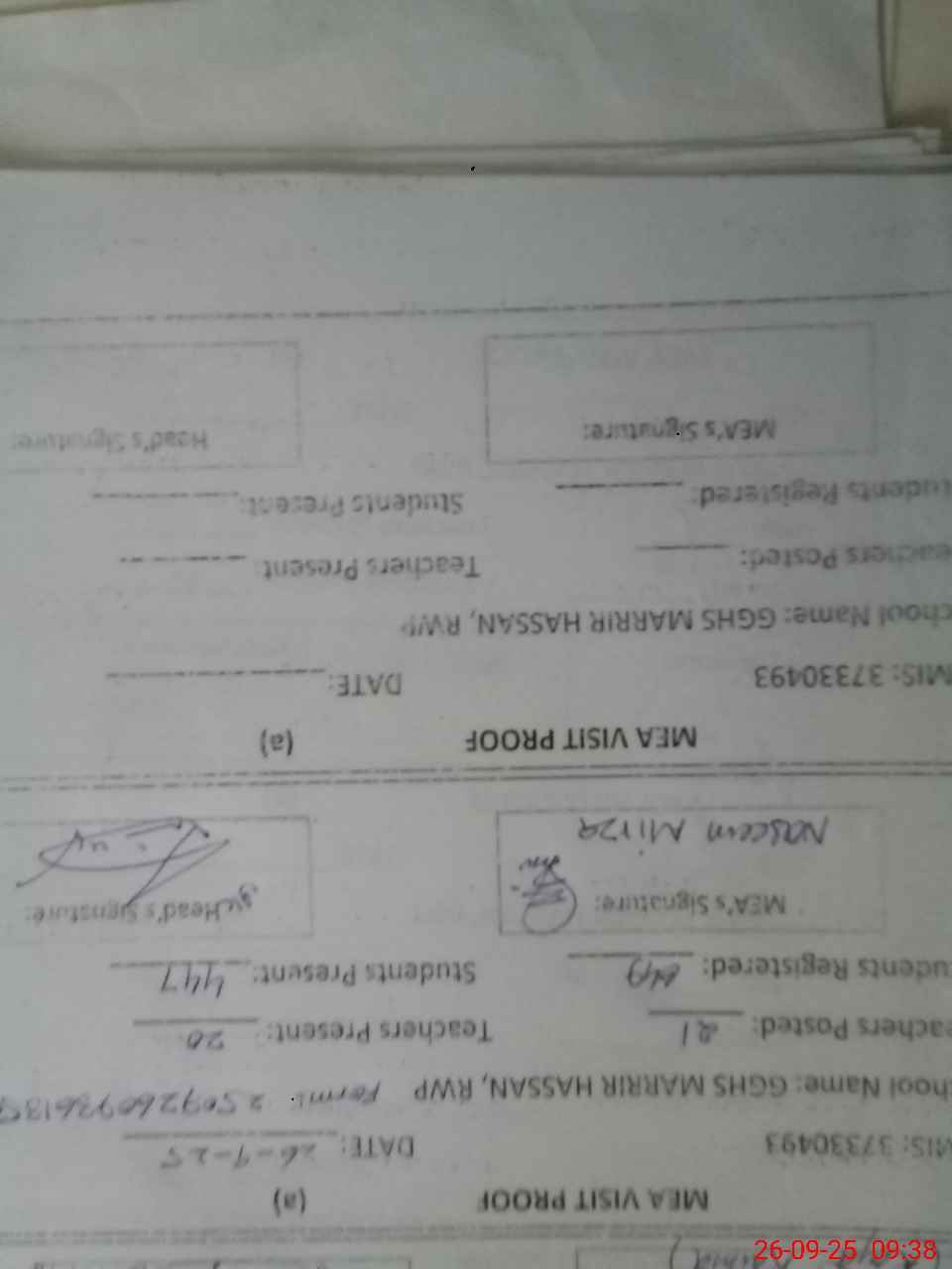 | Certified that this School was Inspected by the Undersigned MEA/DMO Today and the Information Stated Above is as Per Record. | |||||